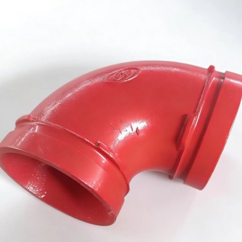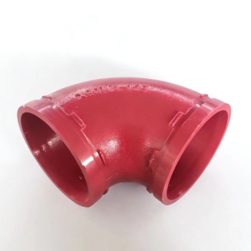 Это угловой фитинг с канавками, используемый в трубопроводном строительстве для изменения направления потока воды.